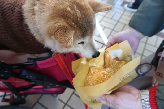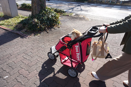 カートに乗せて駐車場に戻り、マコを車で留守番させておいてお昼ごはんを食べに行きました。