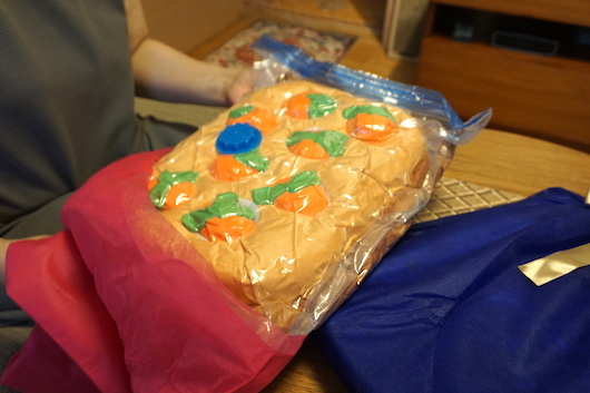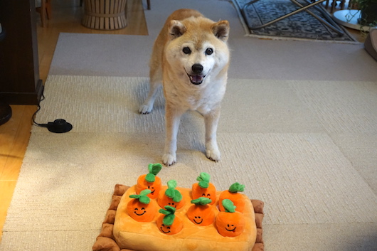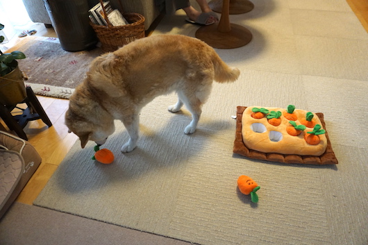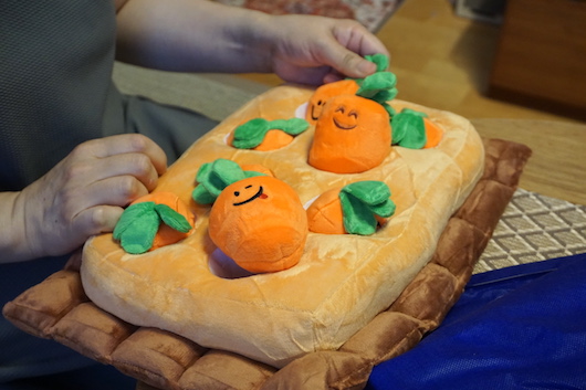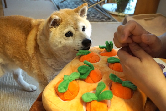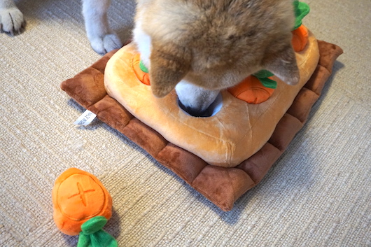 穴の空いた場所におやつを入れて、フタをするみたいです。