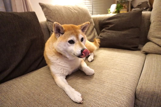 下痢が治ったことをいいことに、堂々とソファに居座るマコちゃん。。