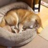 この日も変な寝相をしてました。