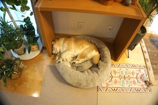 マコは寒さのせいなのか、歳のせいなのか、朝はなかなか起きないですね。
