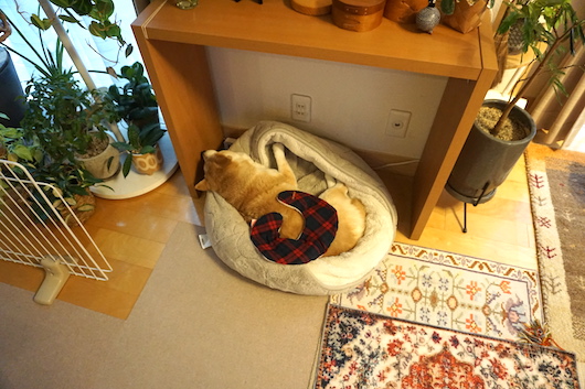 マコにはレンジで温める湯たんぽを掛けてあげました。