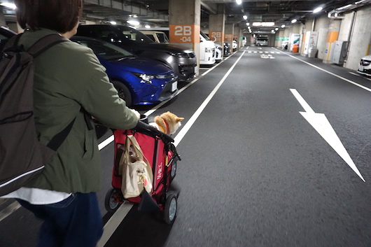目的地に着いて、地下の駐車場に停めて地上に向かいます。