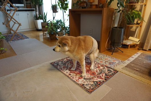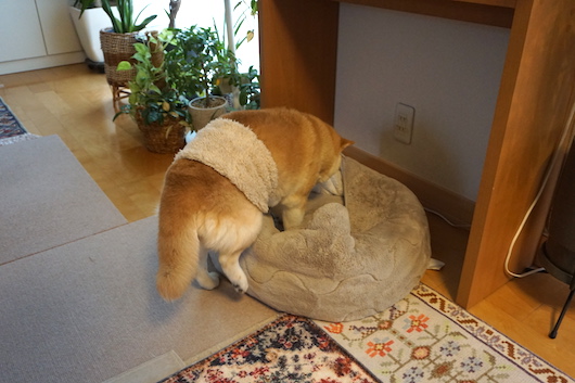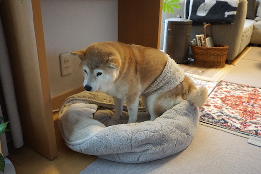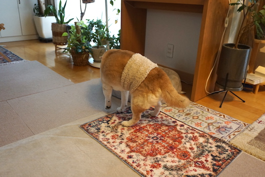 お腹の調子は良くなってきましたが、お腹を冷やすのは良くないので腹巻きをさせるようにしました。